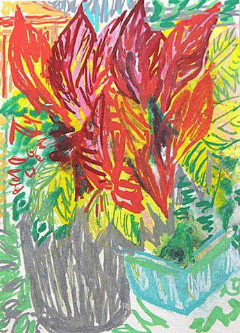 Cannas on Fire, Acrylic Ink on Paper, 7" x 5", 2026.