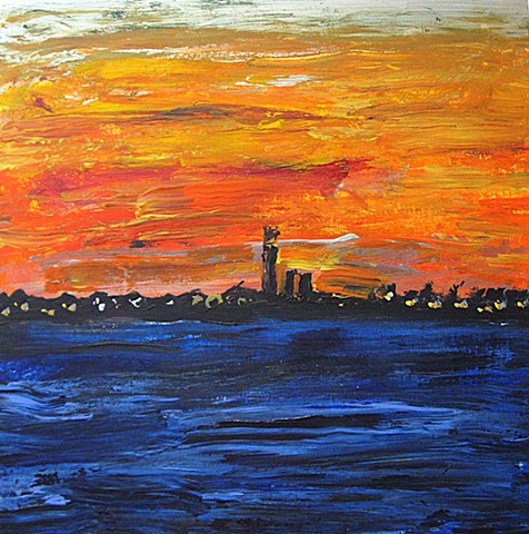 Monumental Sunset, Acrylic on Panel, 16" x 16", 2026.