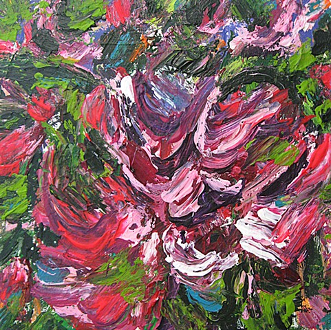 Rosa Mundi, Acrylic on Panel, 12" x 12", 2026.
