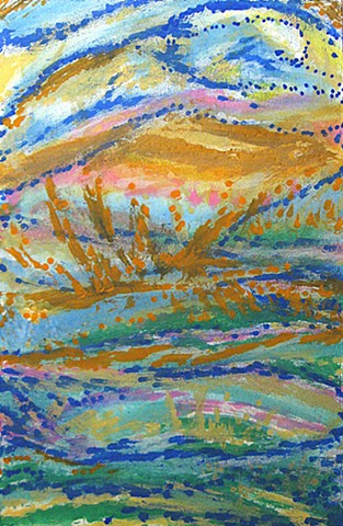 Floating Above the Sun, Acrylic Ink on Paper, 11.25" x 7.5", 2026.